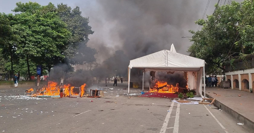 দুপুরের দিকে পুলিশ মঞ্চের সামনে থেকে তাঁদের সরিয়ে দিলে উত্তেজনা ছড়িয়ে পড়ে। প্রত্যক্ষদর্শীরা জানান, পুলিশ বিক্ষোভকারীদের ওপর লাঠিচার্জ করে এবং পরে সংঘর্ষের ঘটনা ঘটে। পাল্টাপাল্টি ধাওয়া, ইটপাটকেল নিক্ষেপ, বিস্ফোরণ ও কয়েকটি গাড়ি ভাঙচুরের ঘটনাও ঘটে। আহত কয়েকজনকে হাসপাতালে নেওয়া হয়।